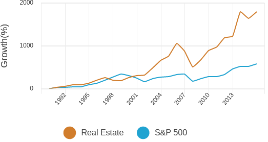 The recurring cash flow comes from leases, which are long-term contracts providing a source of predictable income. Pair that with the potential appreciation from rents and land values increasing over time, and the underlying value of the raw materials with which properties are built, and you’ve got an investment that can be lucrative when the economy is strong, and a safe haven when it’s not.An investment that has consistently beat the stock market.